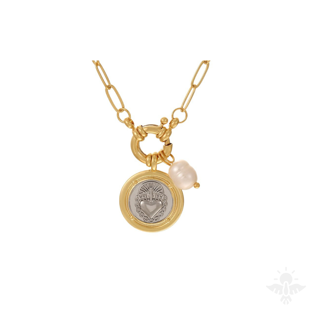 Collar con Corazón con Colgante Redondo