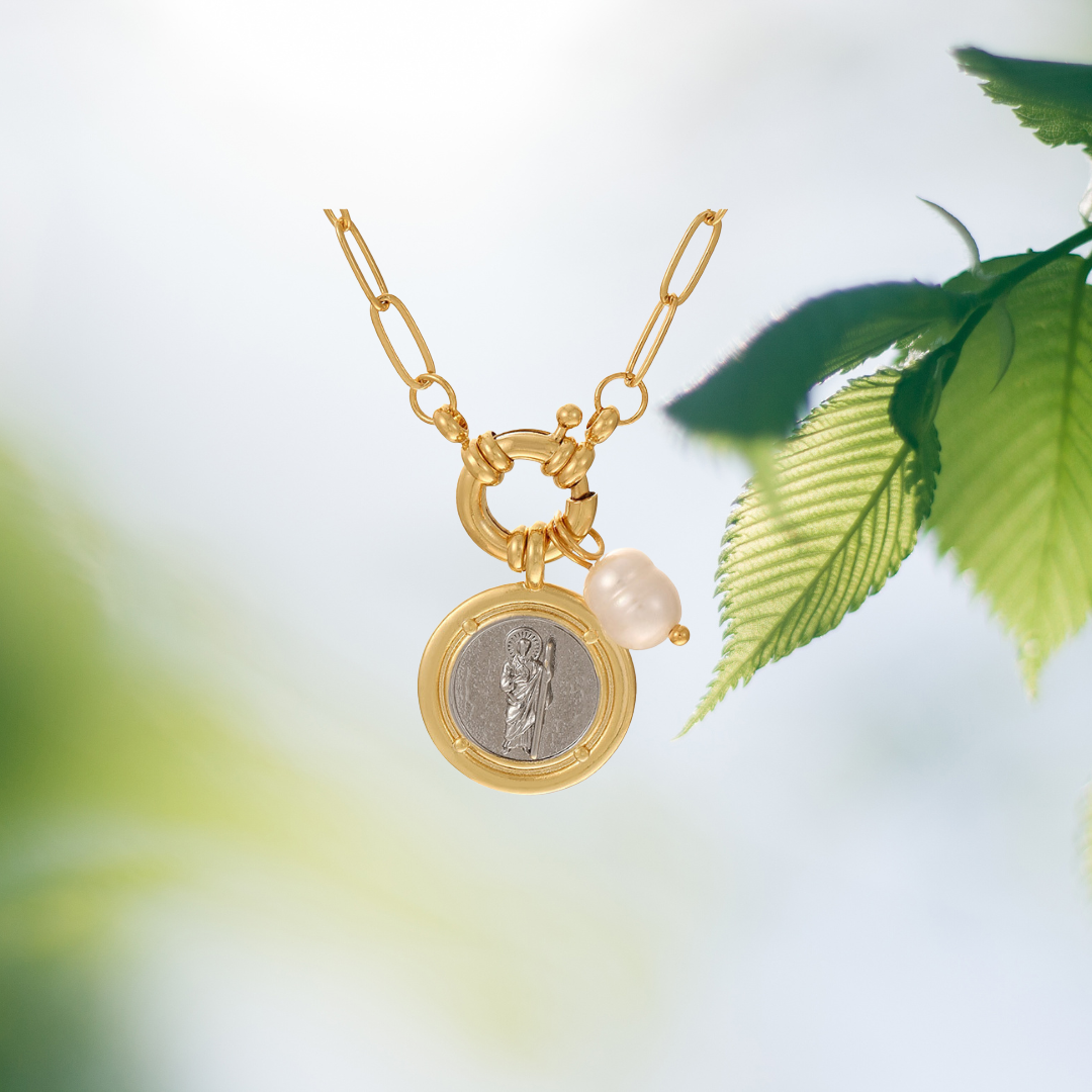 Un símbolo de fe y protección que puedes llevar contigo todos los días. Este collar de San José está elaborado en acero inoxidable de gran durabilidad y acompañado por un dije con perla natural, que aporta un toque elegante y distintivo. Ideal para expresar devoción, brindar protección y convertirse en un regalo especial. ¡Llévalo contigo hoy!