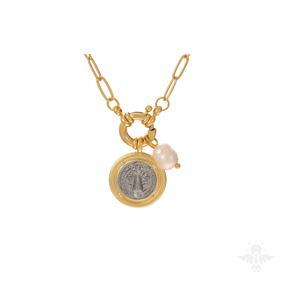 Lleva contigo la fuerza y protección de San José con este elegante collar retro. Su colgante geométrico redondo en nácar natural refleja luz y serenidad, evocando un estilo británico sofisticado con esencia espiritual. Una joya única para mujeres que desean combinar fe, propósito y elegancia en cada detalle.